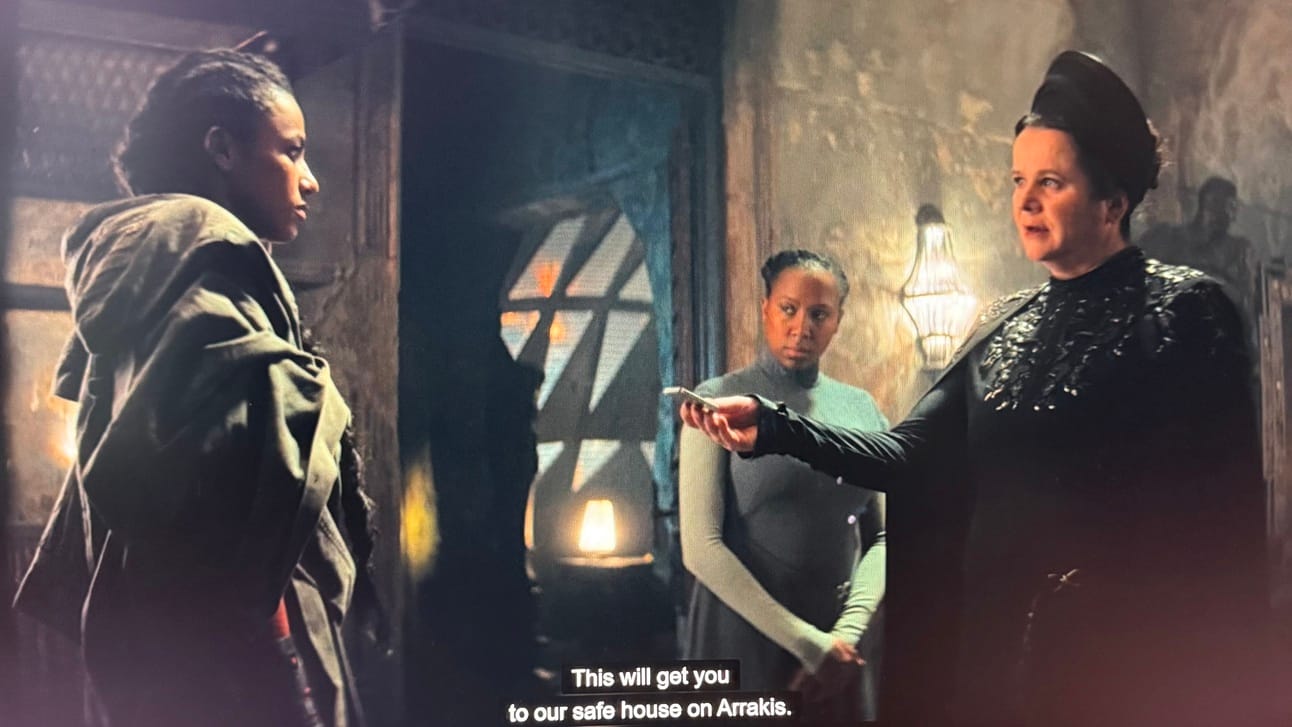In her last scene, Valya gave her the means to go to Arrakis, so she'd be perfectly placed to guide our merry band of adventurers.